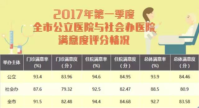 调查结果显示,第一季度深圳全市医疗服务综合满意度为83.58分,比2016年第四季度提高0.91分。患者对深圳市医院诊疗服务总体评价处于“满意”区间。