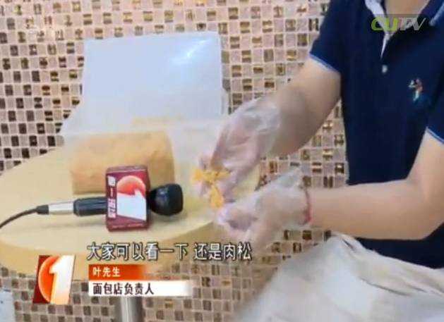 情况是否属实?记者随后也来到毛先生买面包的店铺一探究竟。该店一名叶姓负责人得知记者的来意后,立刻将面包店内的肉松原材料拿了出来,并表示这些肉松全是在农贸市场上统一采购的,从业这么久,还从来没听说过,肉松能用棉花做。为了证实自己的观点,这位叶先生也现场给记者做起了实验。