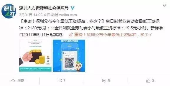 今年4月份深圳人社局宣布,6月1日起将上调深圳最低工资标准从2030元/月上调至2130元/月。