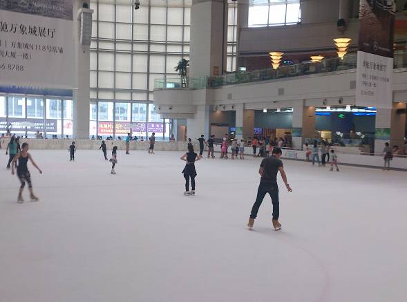 这个滑冰场设备都很新,场地还算大,环境不错,冰很干净很平。里面小朋友比较多,滑得很不错哦~