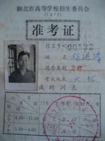 杨洪清当年的准考证。