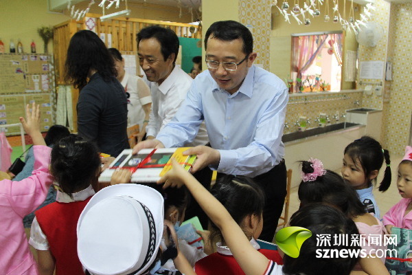 深圳新闻网讯(记者 王志明)“小朋友们,节日快乐。”6月1日上午9:15分,南山区委副书记、区长王强,副区长练聪,区政协副主席、区教育局长刘根平等,一起来到南山区教育幼儿园,向小朋友们送上节日的祝福,并为孩子们送上礼物。王强表示,公办幼儿园要发挥示范和引领的作用,带动普惠幼儿园规范专业发展。