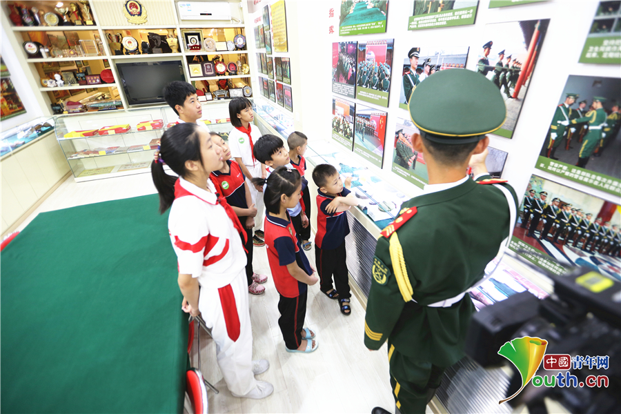 泓燕环保公益团队队员参观国旗护卫队荣誉室。中国青年网通讯员李超 摄