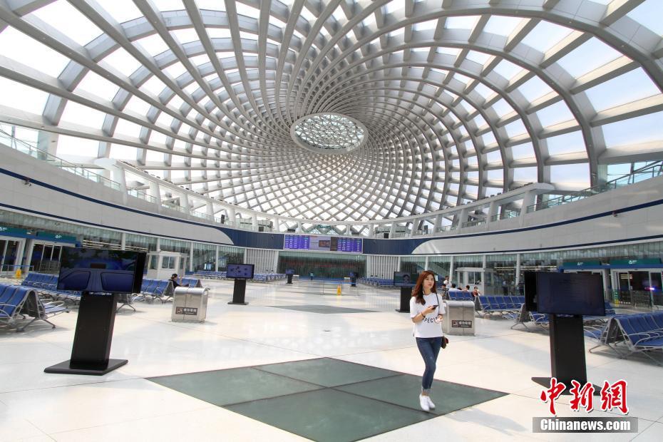6月1日,天津于家堡高铁站内,一位旅客准备入站乘坐高铁。于家堡高铁站的建设为全球首例单层大跨度网壳穹顶钢结构工程,该站于2015年9月20日正式通车,标志着北京-天津-滨海新区快速通道的打通。中新社记者 张道正 摄