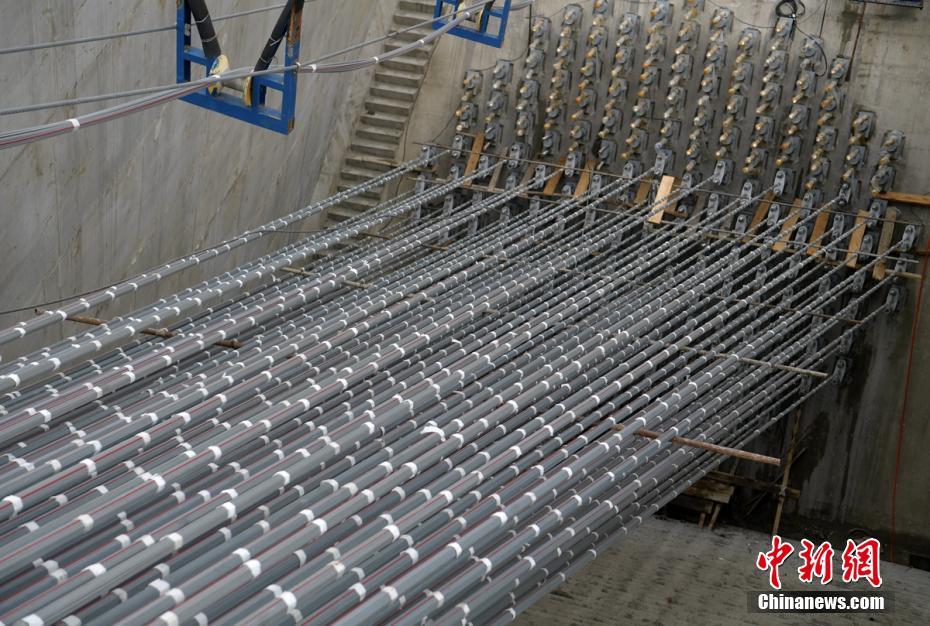 工人师傅正在对大桥钢索进行固定。刘忠俊 摄