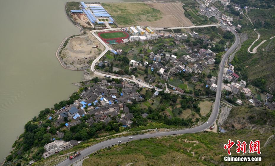 站在离大渡河河面200多米高空上俯瞰移民新村。刘忠俊摄