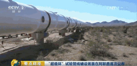 画面中的试验场位于美国内华达州的沙漠地区,施工人员正在吊装和拼接“超级环”行进轨道的管线,管线直径达3.3米。