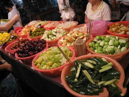 “嘢”是南宁当地白话,是指东西,酸嘢就是酸东西。由于南宁地处南疆,气候湿热,当地人靠吃酸来提神解渴祛除湿气,久之成为便饮食习惯。