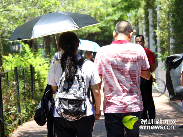 不惧炎热 家长考点等候为考生打气