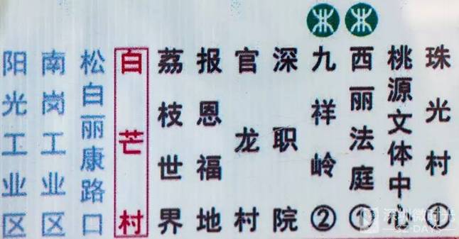 九祥岭有西丽地铁站,是距离白芒村五公里外的地铁站点。白芒村紧挨着以前的白芒检查站,过去就是宝安区石岩地段。