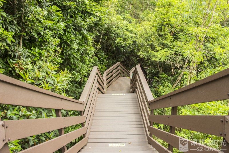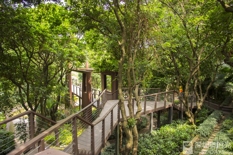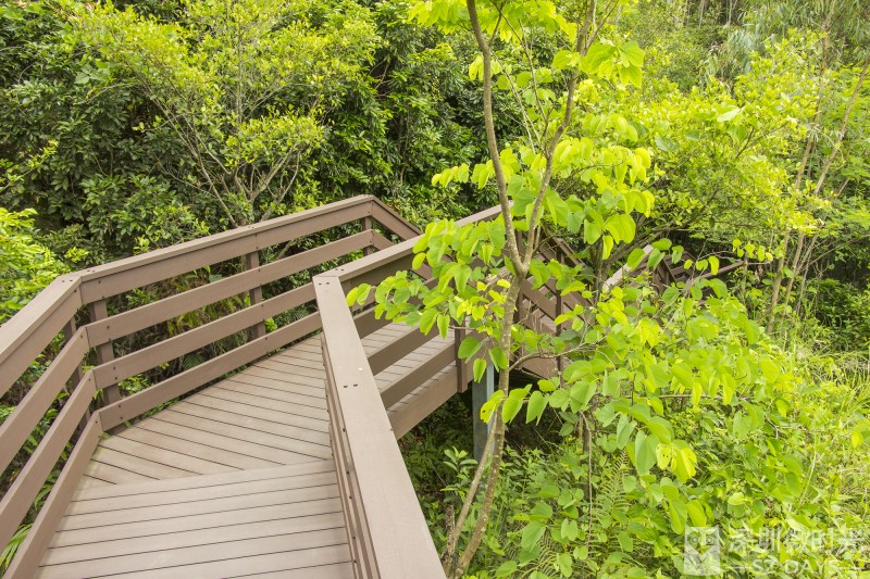 高高低低,曲折回绕,除了享受亲近自然的趣味栈道,更不能错过在栈道最高点望见的西丽水库的迷之倩影。这是除了半山腰的红亭之外,园区第二个最佳观水点。