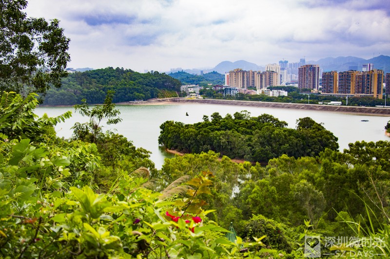 半山腰的红亭子,便能在恰好的距离望见西丽水库,它可是南山区和宝安区的生活用水源头,现如今水库周遭戒备森严,想要一睹它的优美的环境,也只能选择在示范园里静静登高远望啦。