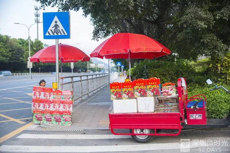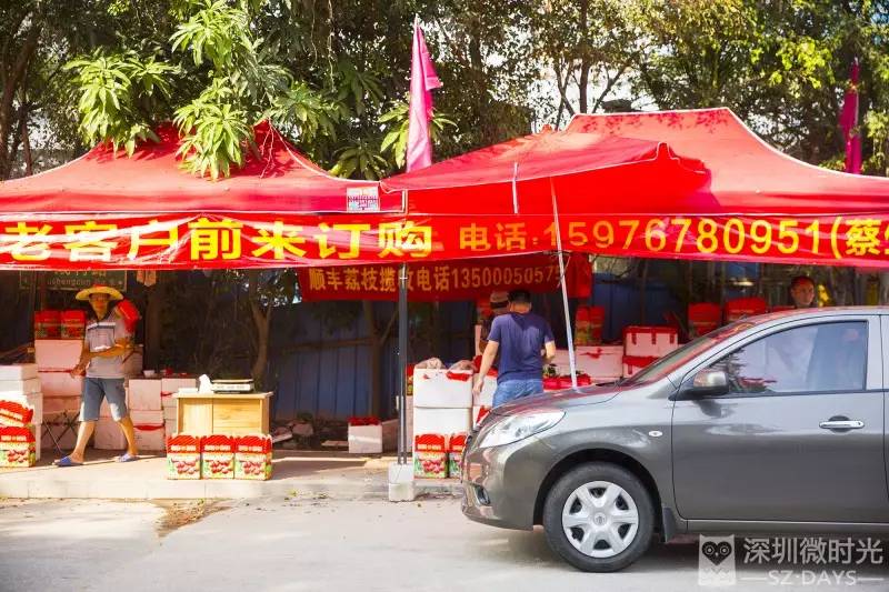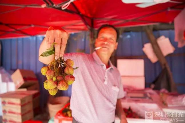 从五月底荔枝成熟开始,这条街就撑起火红的遮阳篷,把最好吃的南山荔枝卖到深圳各区甚至全国各地,一直持续到七月底或八月初荔枝结束季。