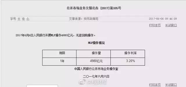 央行突然出手!6月6日,央行通过官方网站宣布:央行宣布开展MLF操作4980亿,全部为1年期;利率为3.2%,与上次持平。