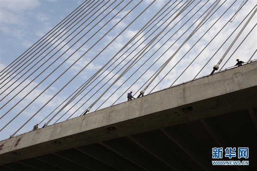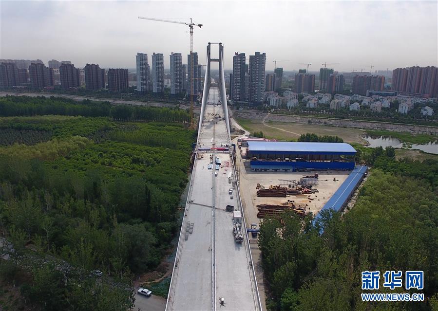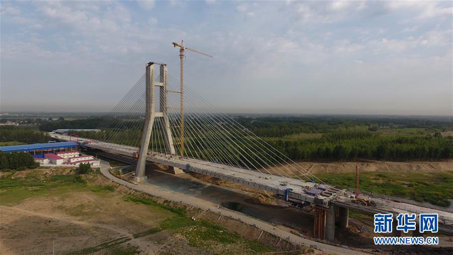 6月11日,工人在潮白河大桥工地现场施工。当日,连接北京通州与河北燕郊的潮白河大桥合龙。潮白河大桥于2015年5月开工建设,全长1118.6米,预计于2017年9月完成施工任务,年底前具备通车条件。新华社记者金立旺 摄