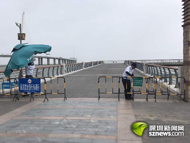 15时40分,深圳湾观海栈桥已经关闭禁止游客进入