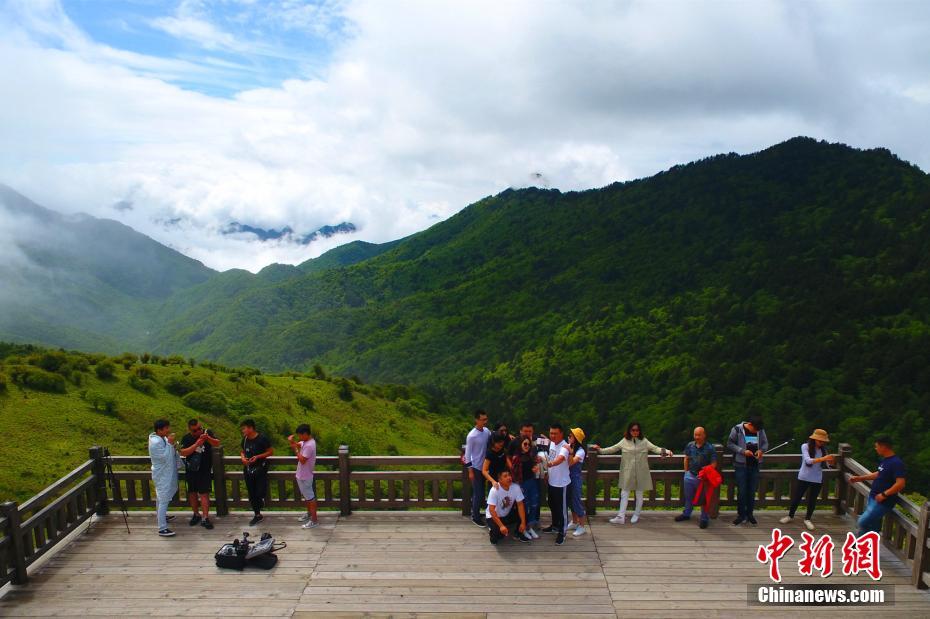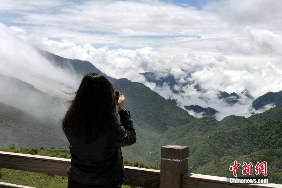 6月10日,湖北神农架国家公园现云海奇观,吸引大量游客前来观看。