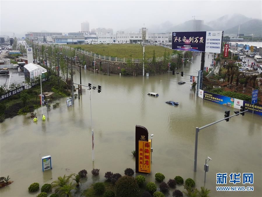 6月12日,贵阳市孟关汽车贸易城路段积水严重。