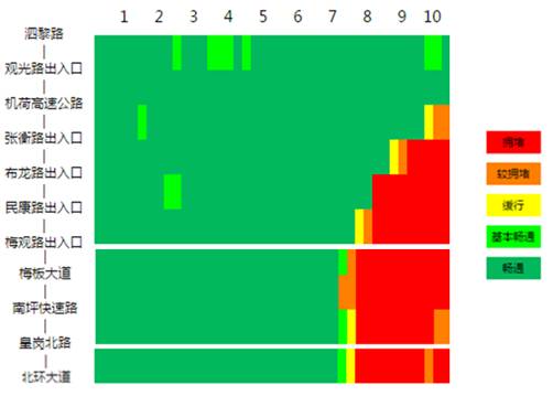 图6本日梅观-皇岗通道(南行)拥堵时空图
