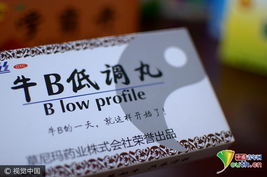2017年6月12日,山东潍坊市,一商店货摊上现各类创意糖果包装盒,形似药品盒外包装上印有“含笑半步癫”、“装逼丸”、“速笑脑残片”、“开心药”、“艳遇丸”、“瞬间发情散”等文字,并配有诙谐的使用说明,吸引了众多市民围观“尝鲜”。
