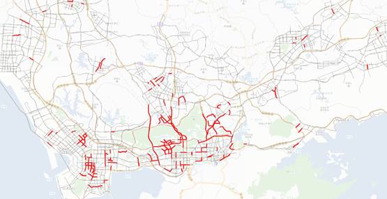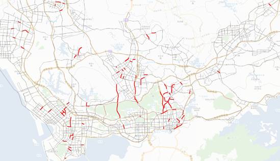 图4本日(台风天)的早高峰拥堵路段分布