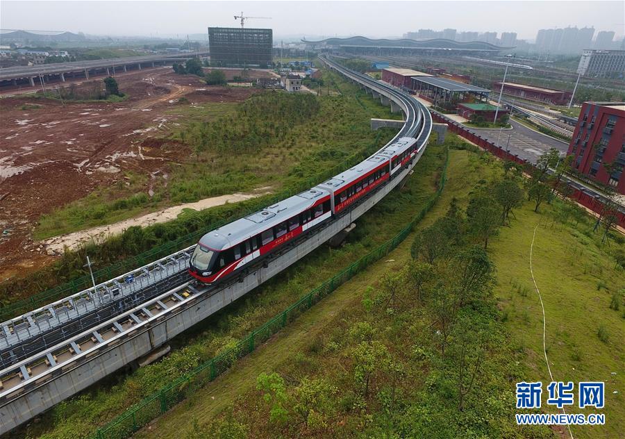 运行中的长沙磁浮快线(2016年10月2日摄)。