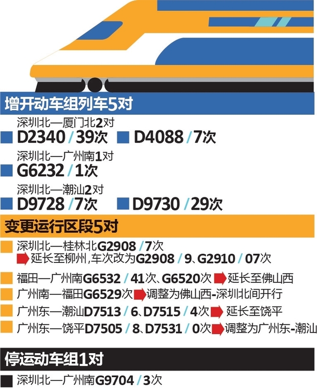 此次调图增开动车组列车5对,变更运行区段5对,停运动车组1对。(记者 谢敏 记者 通讯员张茜茜)