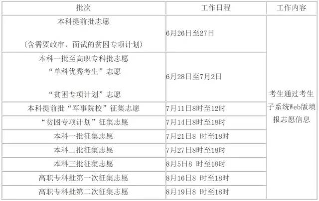 ■ 8月1日至4日:填报独立学院和民办高校本科(含独立学院、民办高校艺术本科类专业和体育类本科专业)志愿,高职(专科)(含高职[专科]“专项计划”、高职[专科]艺术类专科专业和体育类专科专业)志愿。