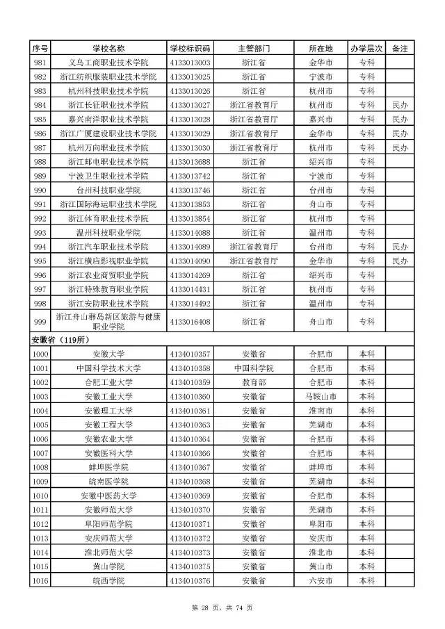 日前,教育部发布《全国高等学校名单》。截至2017年5月31日,全国高等学校共计2914所,其中:普通高等学校2631所(含独立学院265所),成人高等学校283所。