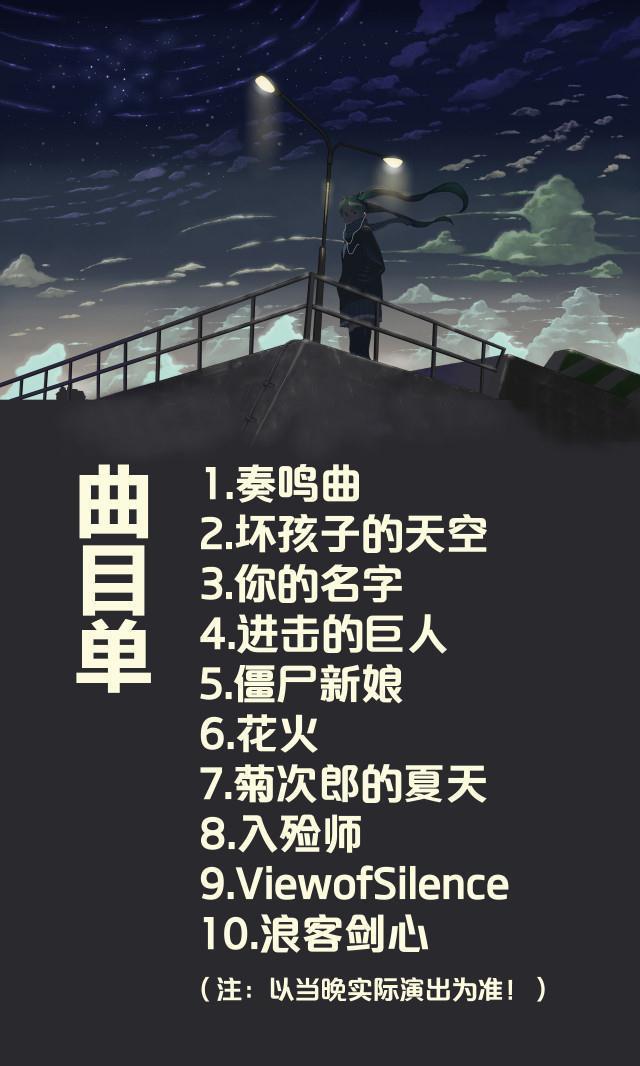 星辰五重奏乐团将为乐迷们演奏北野武电影音乐的代表作品中最为大家喜爱、最优美动听、最令人感动的经典音乐。这些经典作品中的一幅幅精彩画面将伴随着温馨、浪漫而又大气磅礴的交响音乐呈现,这将无疑是一次视觉和听觉的绝佳享受。