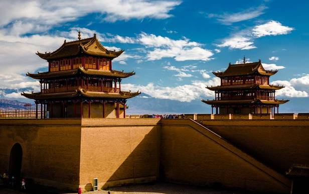 这里并不仅是单独的关隘,分为内城、外城和城壕。外城的雄关水寨可以远摄关城外景,进入内城登上城楼,祁连山麓在远方连绵。