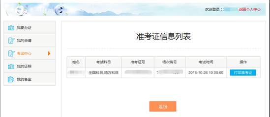 申办人在完成【考试预约】后,可查询打印准考证(注:准考证务必于考试开考前打印好,否则将无法参加考试),申办人可持 本人有效身份证件以及准考证按预定的考试时间、地点按时参加从业资格考试;考试包括全国公共科目和深圳区域科目考试。