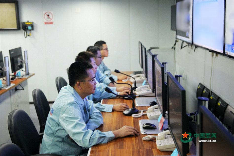 一声汽笛,远望3号船结束了短暂补给,即将从锚地出发奔赴校飞任务海域,此时测控岗位人员已经严阵以待。