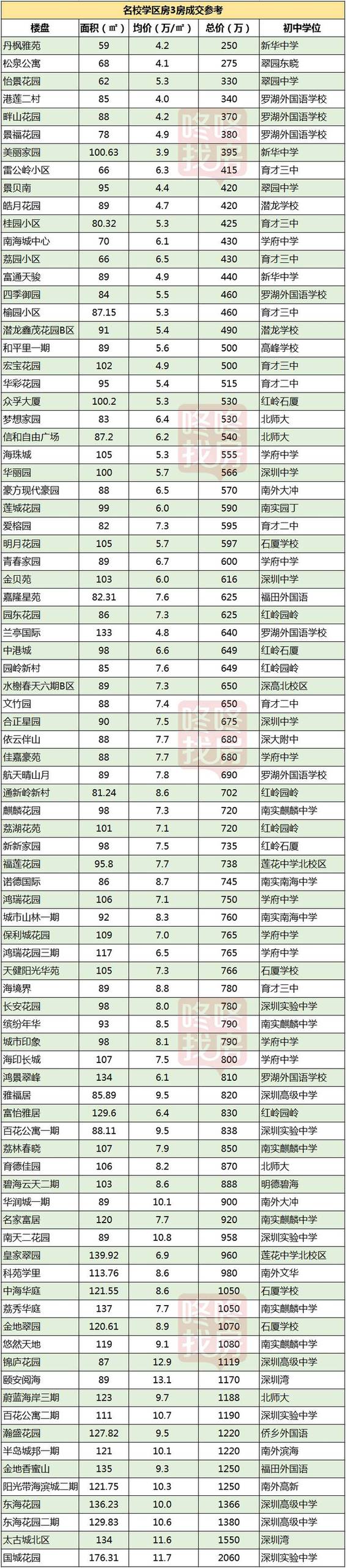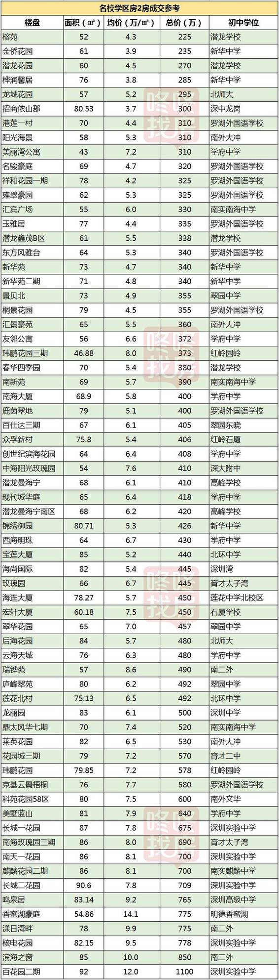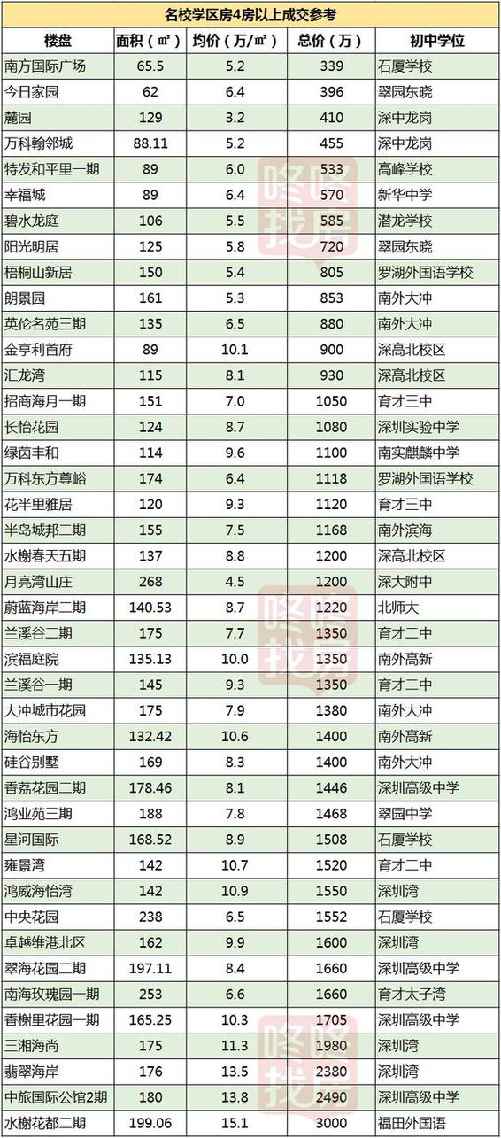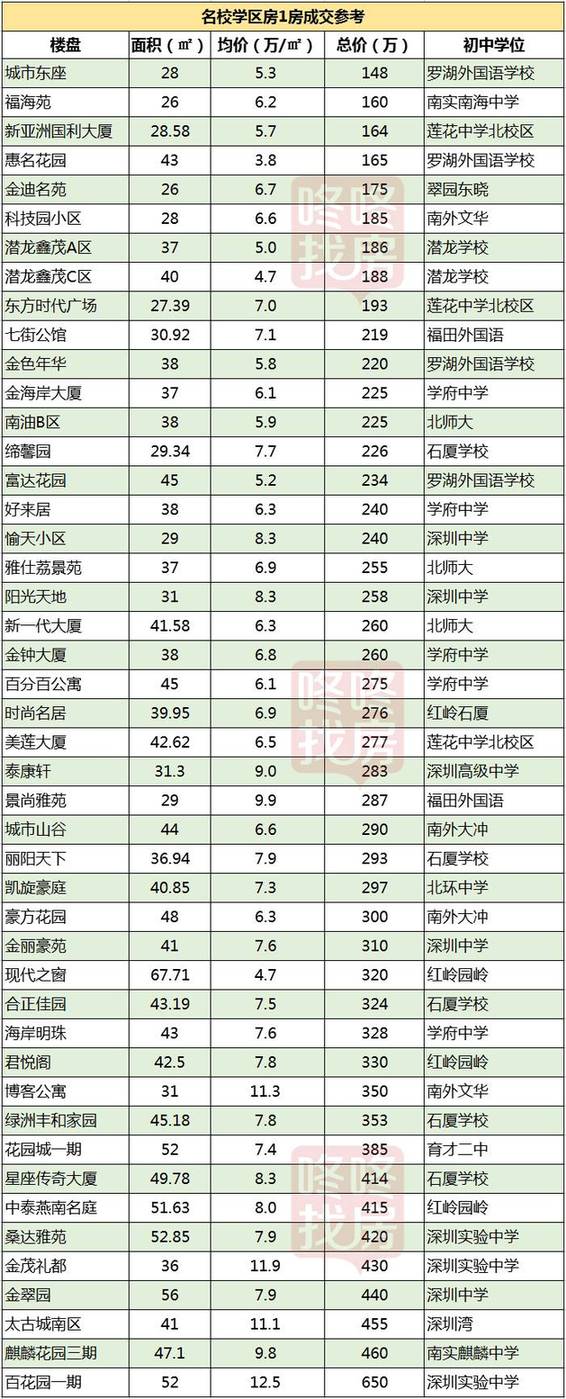 最新深圳名校学区房价格表