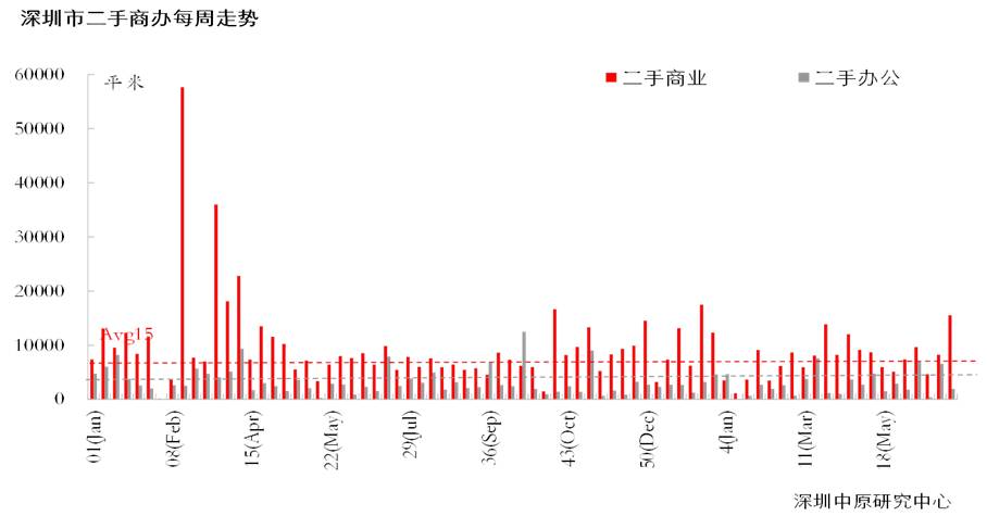 二手办公成交19套,共计0.19万平,面积环比↓70.37%。