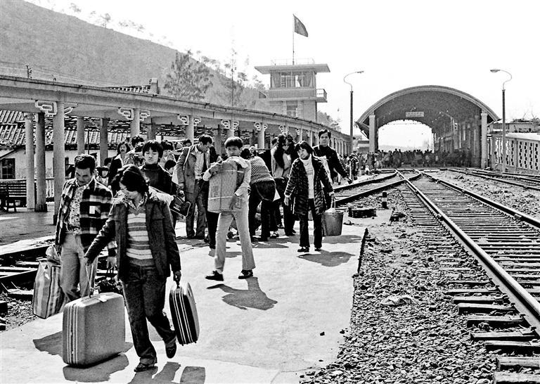 《人们步行过罗湖桥回乡》1979年 作者:何煌友