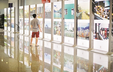 昨天下午,深圳会展中心6号馆内一片热闹景象:工作人员把参展作品悬挂到展板上,为此还动用了激光校准仪器;主办方对逐幅作品进行最后的检查;一些参展摄影家们很上心,亲自到现场参与布展……