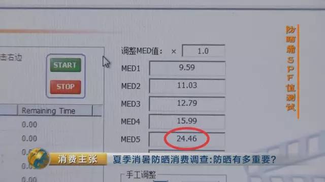 田燕中国人民解放军空军总医院皮肤科副主任医师:那么我们刚才看了这个志愿者,在没有通过任何产品的时候呢,她需要这个剂量,把她皮肤晒红,用24.46秒这么大的剂量,因为光源输出剂量是固定的,然后我们只是看时间变化,那么这个志愿者呢,她需要24.46秒来把皮肤晒红,就这么大的强度,然后我们一会儿涂抹上防晒护肤品以后,然后再来看这个数值会变成多少,如果说这个数值变成了244.6秒,那么这一款产品的SPF值就是10,就是用倍比的关系来表示这个SPF值的变化。