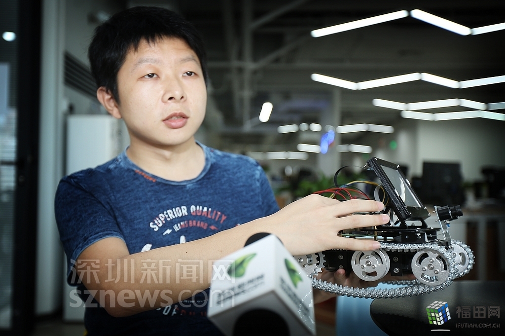 古树森,黑龙江人,2011年来到深圳。自2015年11月份入驻赛格众创空间以来,他一直在研发儿童陪伴机器人。“我选择做这个项目与我的孩子有关,当初想给孩子买一款儿童类的玩具,经常会去市场和网络上看,后来觉得自己动手做,成就感会更强。”古树森告诉告诉记者,希望能够做成一款有孩子的家庭都能买得起的机器人,用科技实现更多的和家庭有关的内容,让孩子的成长更加健康,让家庭更加其乐融融。
