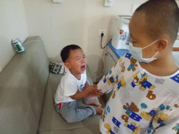 欢乐的时光总是短暂的,赵弘逸的医治在紧锣密鼓的进行之中。2岁半的小弘博看到医生为哥哥打针,父母经常流泪,年幼的他,无法理解这一切。前几日,在哥哥打完针之后,小弘博再也忍不住多日郁积于心的恐惧,拉着哥哥赵弘逸的手,哇哇大哭:“哥哥,你是要死了吗?”