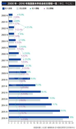 但中国人民大学中国社会保障研究中心副主任杨立雄告诉《中国经济周刊》记者,“很多说法都是危言耸听,尤其是养老金缺口将达8万亿~ 10万亿元,不知道他们是采用什么方法计算出来的,缺口怎么会这么大?其实,10年前就有养老金缺口扩大甚至崩盘的说法,现在也没有崩盘。目前养老金个人账户还结余很多。根据人社部统计的2016年结余数字,可以确保17个月的支付。这充分说明养老保险当期运行是平稳的。”