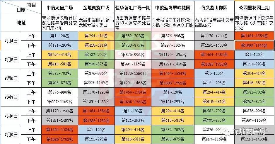 以下为:龙岗区户籍家庭公共租赁住房(2017年度第一批次)看房时间安排表,提醒各位小伙伴