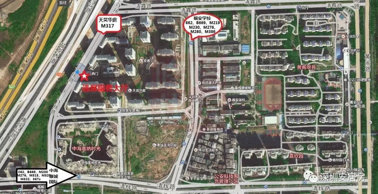 2、可乘坐:862 b669 m230 m276 m315 m319 m320 m322 M367a公交车,到中海康城国际站下车步行至天昊华庭小区西门
