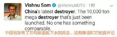 不只是普通网友,就连印度新德里电视台的防务新闻主播维什努·索穆还特别发推文“点赞”。
