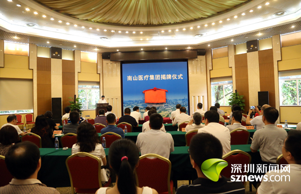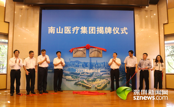 深圳新闻网讯(记者 曹文丽 通讯员 陈贤亮)6月30日下午,南山区公立医院改革迈出了实质性的一步,南山医疗集团在区委荔香居举行揭牌成立仪式。南山区委副书记、区长王强,市卫计委主任罗乐宣,市委卫生工委专职副书记廖澍华,市卫计委副主任常巨平,区人大常委会副主任曾令格,副区长保长汉,副区长肖辉,区政协副主席刘根平,区长助理刘端端等共同为南山医疗集团揭牌。区政府督察专员邝碧清,区委组织部(编办)、区发改局、区财政局、区人资局、区卫计局、改革办、法制办、市社保局南山分局及区属医疗卫生单位等主要负责同志参加了揭牌仪式。仪式由南山区副区长保长汉主持。