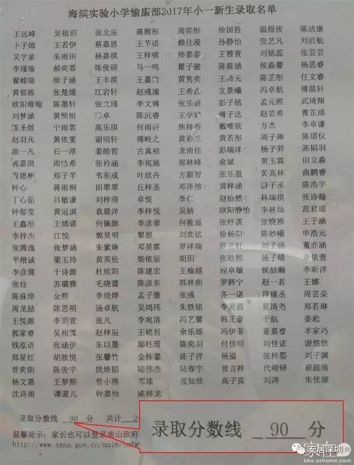深圳各大小学录取名单公布!这所学校录取分数居然要90