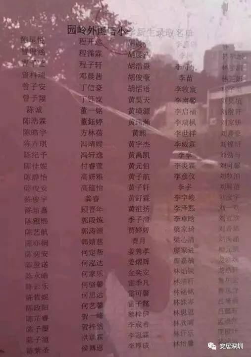 园岭外国语小学录取名单
