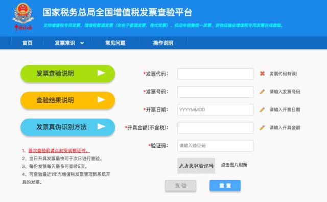 打开“国家税务总局全国增值税发票检验平台”,输入发票代码、发票号码、开票日期金额和验证码点击查验,如果一致,就会出来发票的详细信息;如果发票已被开具方作废,在查验结果中就会显示“作废”;如果输入资料错误,就会显示不一致;如果是假发票,就会显示查无此票。