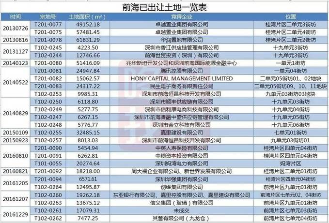 如今距离“第一拍”已近4年,前海共成功出让了25宗地,除卓越、华润、恒裕、嘉里建设、九龙仓等少数几家房企拿地外,其余均为定向出让,保证了前海开发的质量。