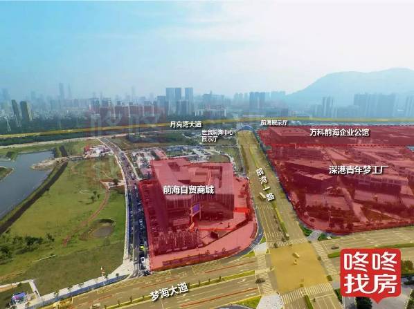 前海核心区内的三大片区均有代表性的建筑崛起。桂湾片区的华润、卓越、恒裕组团,已是摩天成群;前湾片区的万科企业公馆、前海深港青年梦工场已成为目前前海最活跃地带;妈湾片区的十九单元,集合了顺丰、世贸、香江、信利康等总部大厦,即将入驻使用。